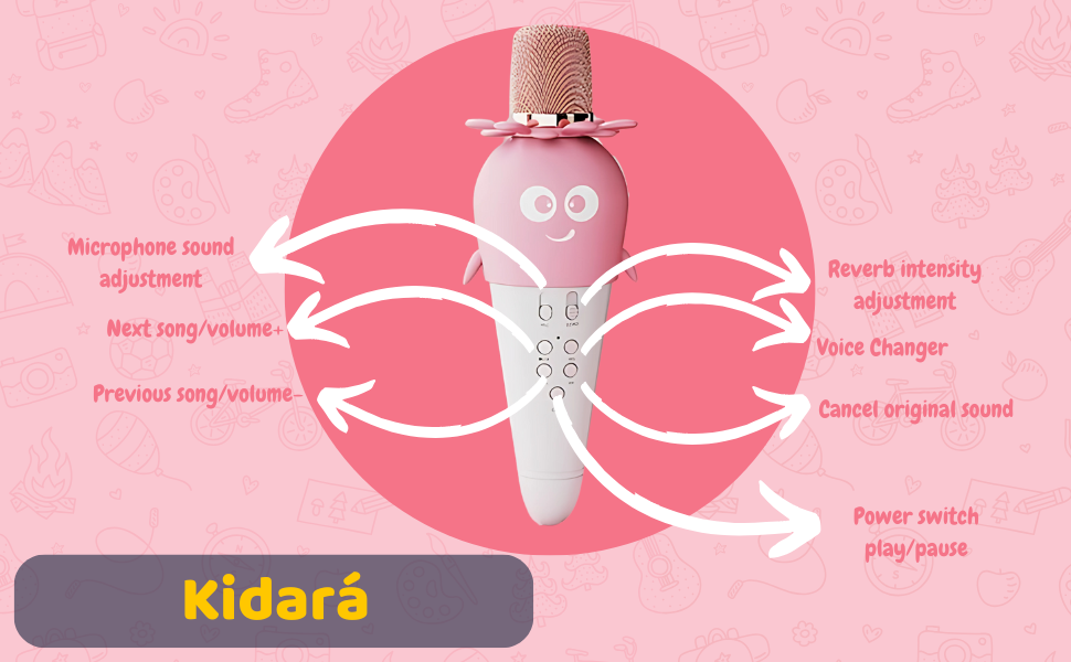 Berry Pop Strawberry Themed Wireless Mic with Built in Speaker & Lights (Pink-White)