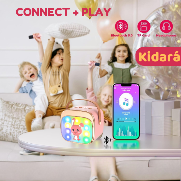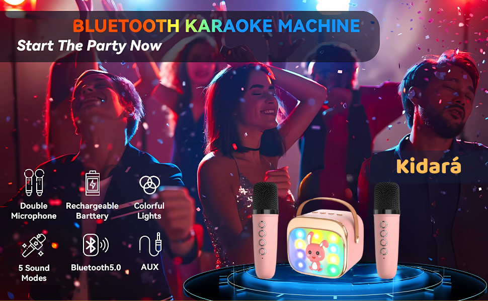 New Bunny Beats Karaoke Speaker with 2 Wireless Mics & LED Lights (Pink)